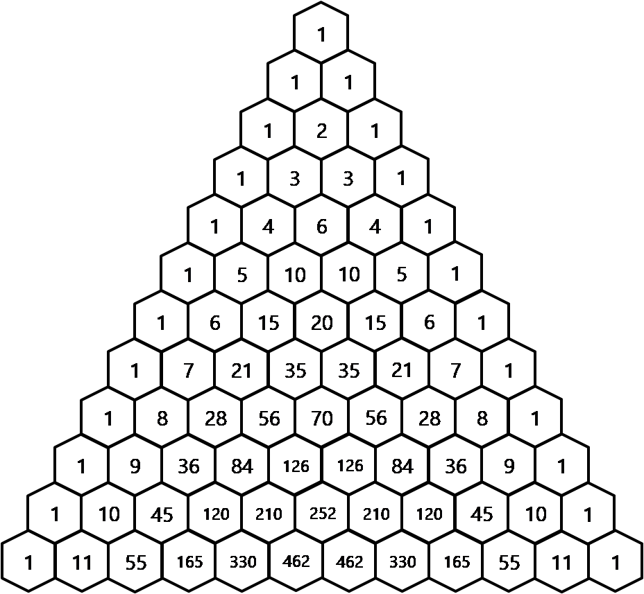 블레즈 파스칼은 13살에 이 삼각형 모양을 발견해 이항계수를 구할 때 써먹었다고 하니 들은적은 있지만 본적은 없는 천재임이 분명합니다.