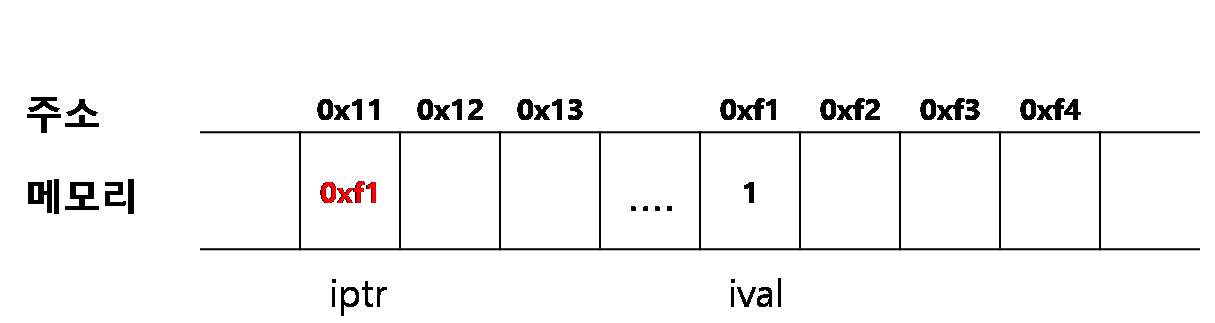 위 변수의 의미는 "iptr이라는 변수가 int형을 가리키는 포인터"를 의미합니다. 즉, iptr이 int형이라는 말이 아니라 int형 자료를 가리키는 주소라는 말입니다. 일반적인 변수 선언에 '*'연산자를 붙여 선언을 한게 전부입니다. 여기서 기억해야할 점은 iptr도 변수이므로 메모리에 저장된다는 사실입니다. 아래 그림을 보시죠.