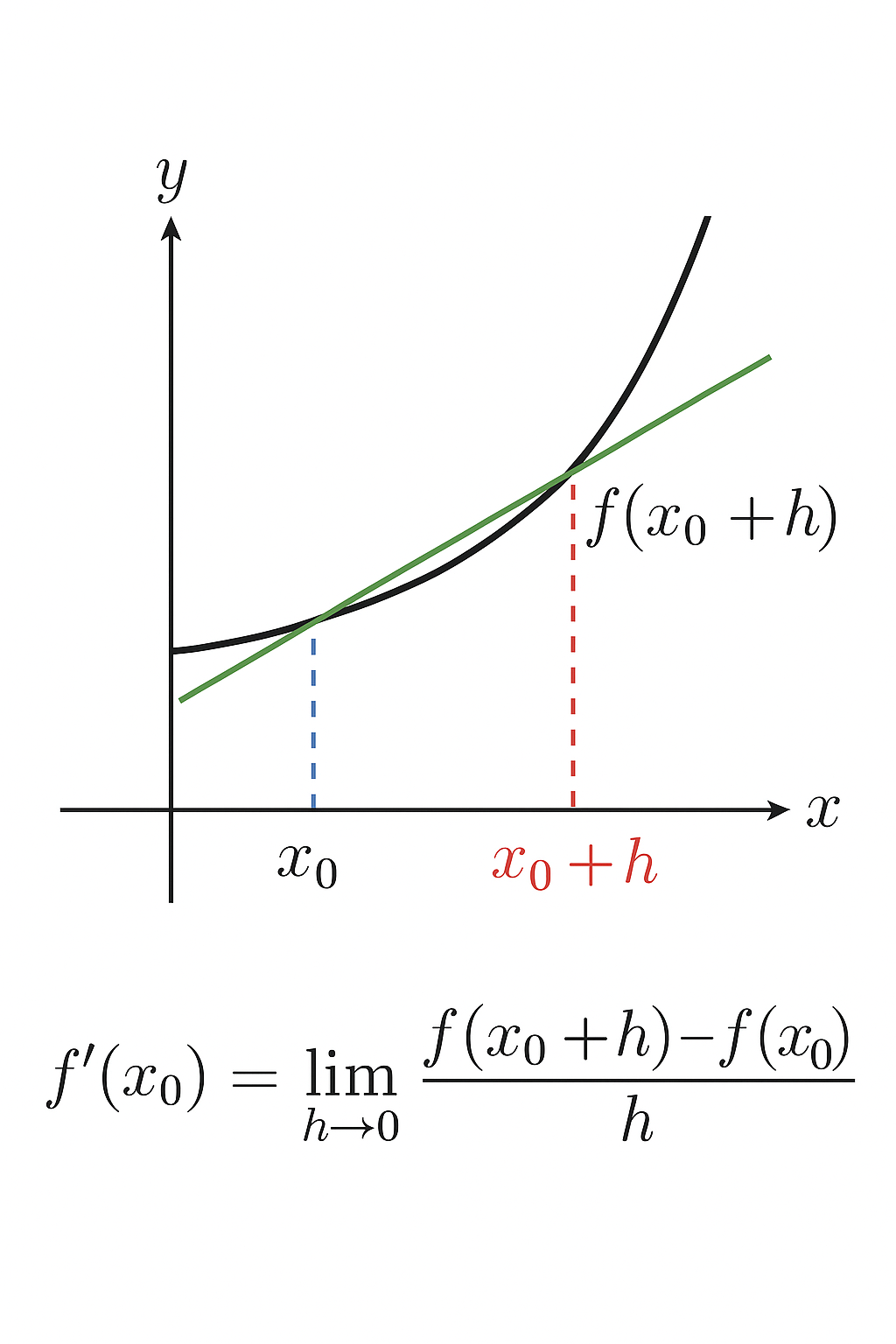$$f'(x) = \lim_{h \to 0} \frac{f(x+h) - f(x)}{h}$$